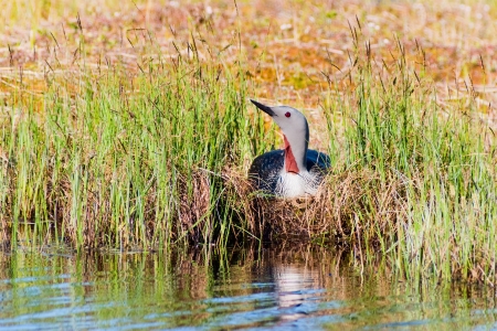 red-throated loon (North America) or red-throated diver (Britain and Ireland)on the nest Iceland