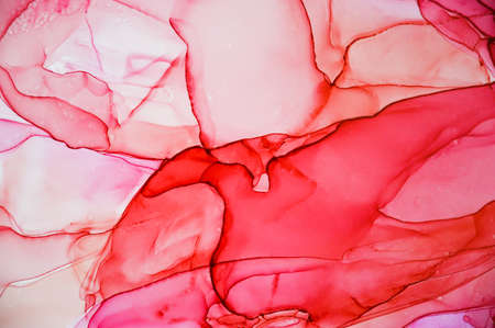 Acrylic Fluid Art. Pink and red waves and whites inclusion. Abstract marble background or texture.