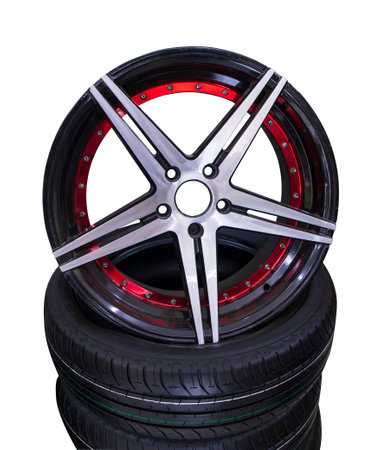 Car wheels rims and tires are isolated on white background