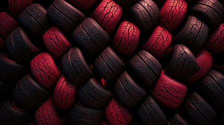 3D rendering of a lot of tires in black and red colors