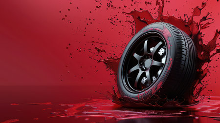 black tire on stylish blue red background
