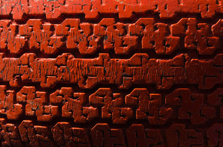 Old red color car tire texture