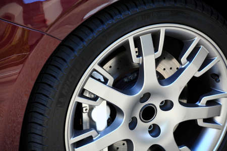 Red Metallic tyre disc of a sport car