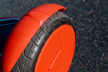 Close up of wheel of self-balancing scooter