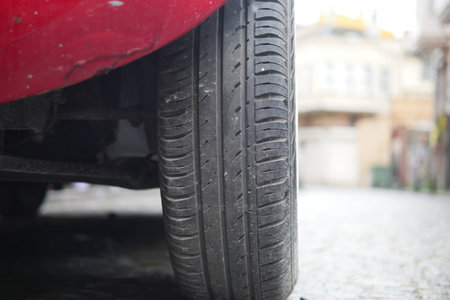Car tires close-up with shallow depth of field, selective focus