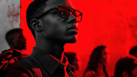 AI Generated. Young Man Illuminated By Red And Blue Light