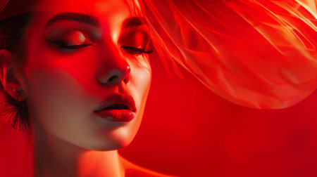 Sculptural Woman in Monochromatic Vision Against Vivid Red