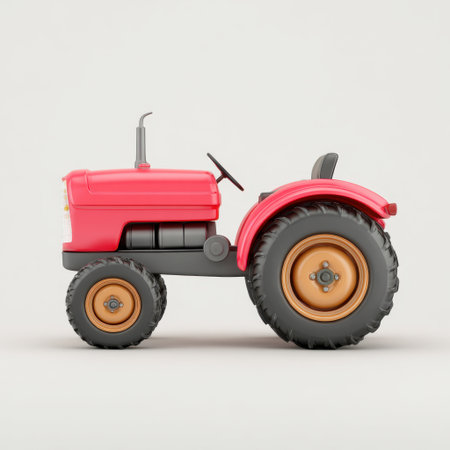 This bright red vintage tractor with a cartoon style is perfect for agricultural themes, children's books, or playful illustrations. The simple design adds a fun touch.