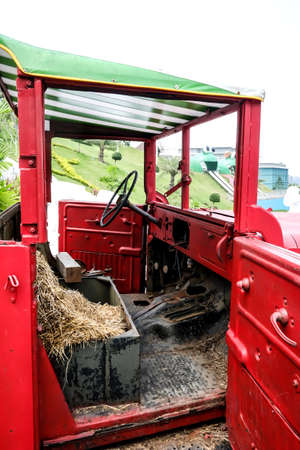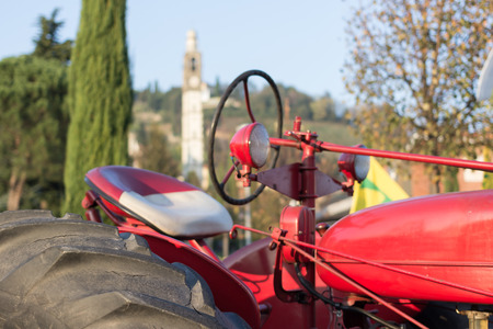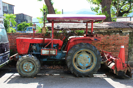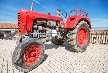 Agriculture aged red tractor retro vintage machine