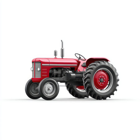 Vintage Red Tractor with Classic Design and Sleek Lines, Isolated on White Background for Agricultural and Farming Themes