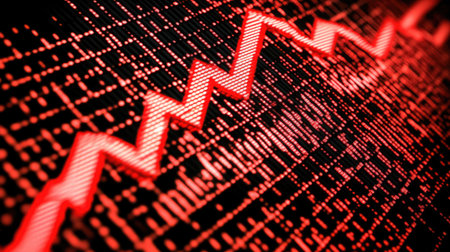 This striking abstract image features a vivid red graph line against a dark background, symbolizing market trends and data analysis in finance.