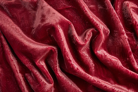 This image features an elegant deep red velvet fabric with soft, graceful waves, showcasing its luxurious texture and rich color, perfect for various design projects.
