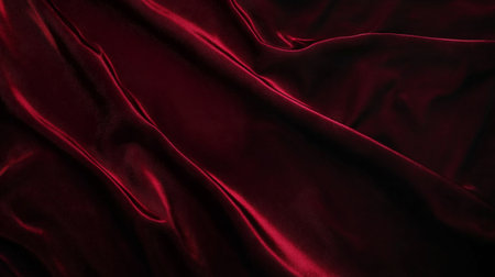 A creative digital illustration depicting Elegant creative design of velvet fabric background in deep burgundy, plush soft folds, warm ambient lighting, luxurious and sophisticated mood, rich color depth. This AI-generated artwork features unique visual elements suitable for various commercial and editorial applications. AI-generated illustration.