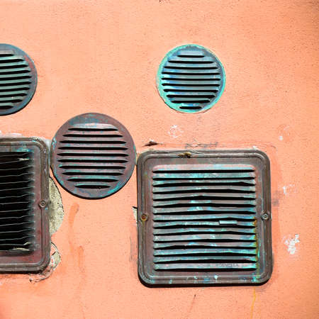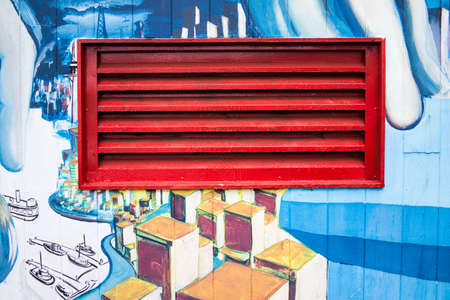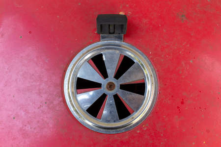 A red ventilator on the old wall of warehouse in Tbilisi, Georgia.
