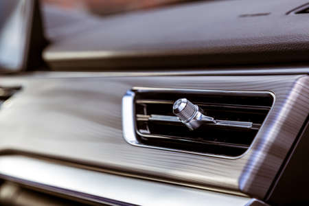 The interior of a modern passenger car with three vents visible and air conditioning control.