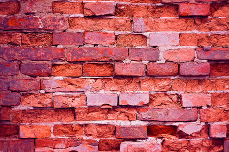 Red old worn brick wall texture background. Vintage effect. close up