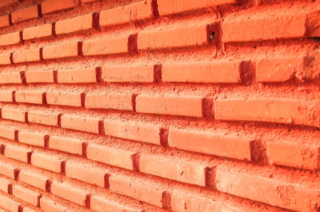 coral wall of red brick in a row. Stone texture