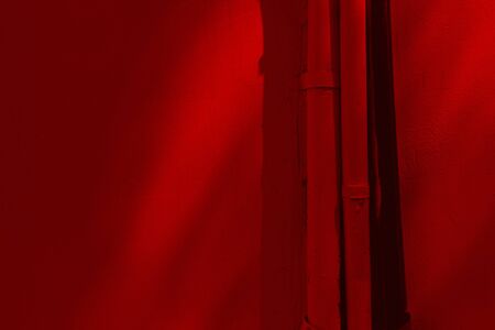 plastered wall red color with tubes. shadows on the wall.