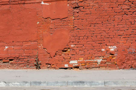 Texture of brick wall with cracked weathered structure red white color close-up .