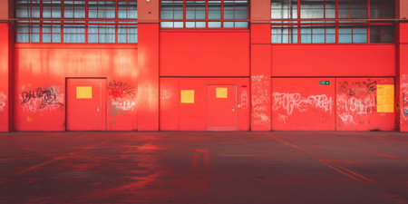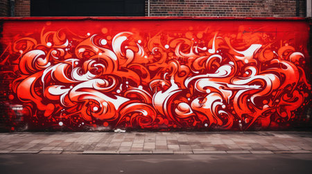 Vivid red wall adorned with expressive graffiti in an urban setting