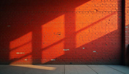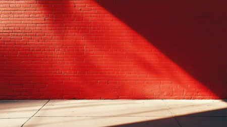 A striking image of a bright red wall illuminated by sunlight, casting interesting shadows on the ground. Ideal for backgrounds and design elements.