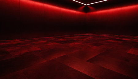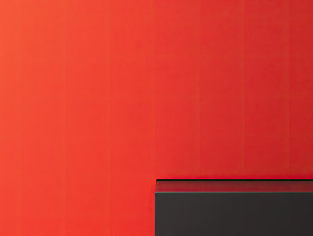 A vibrant visual of an empty wall painted in fiery red, with a matte finish and strong lighting, emphasizing the bold color and energetic feel.