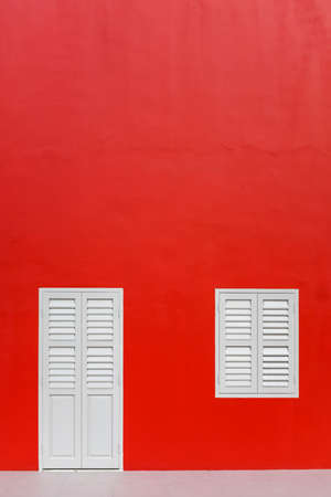 Isolation in red, minimalistic wall design, cage window on the wall