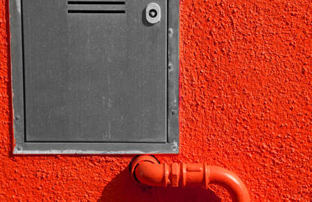 metal door to the methane gas meters and red wall