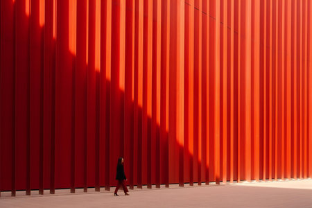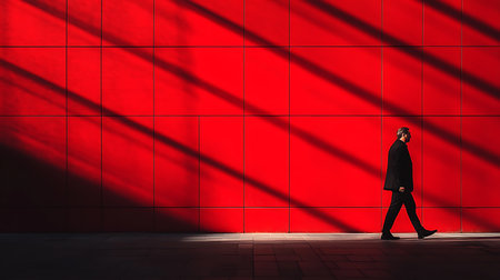 Businessman Walking Past Red Wall, Geometric Shapes, Urban Geometry, Abstract Architecture