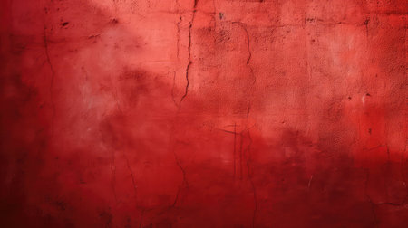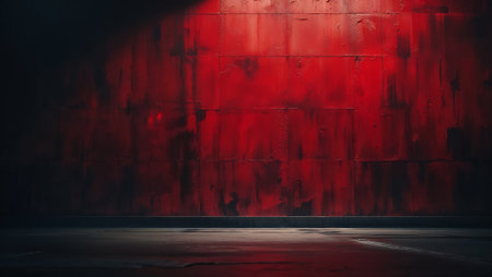 Grunge red wall illuminated by spotlight in dark room, creating dramatic and mysterious atmosphere. Ai generated image