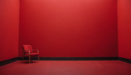 Red chair in an empty room with a red wall in the background