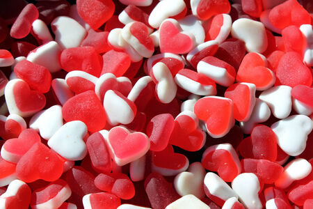 Red Pink and White Valentines Day Candy Corn on a Glittering Red Background