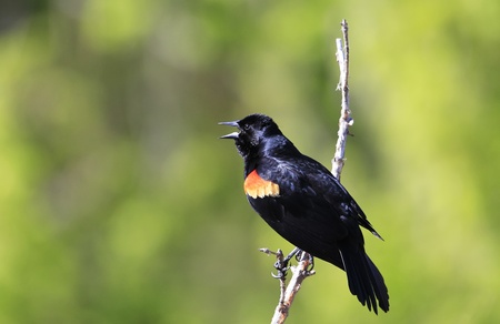 Male Red-winged Blackbird (Agelaius phoeniceus) singing from a perch