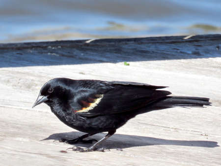 Red-winged blackbird (Agelaius phoeniceus) shot off the Boardwalk during Spring migration at Magee Marsh Wildlife Area in Oak Harbor, Oh