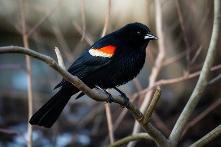 Red-winged blackbird (Agelaius phoeniceus) sitting in a tree, Colorado