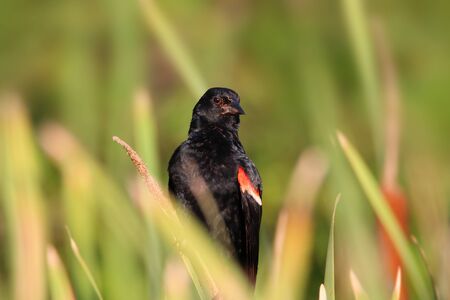 A male red-winged blackbird perching along Lake Apopka, Florida.