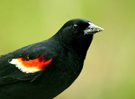 A portrait of a male red-winged blackbird. Burnaby BC Canada