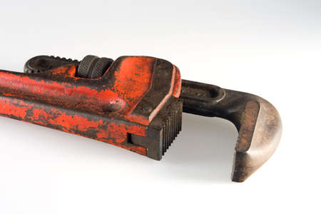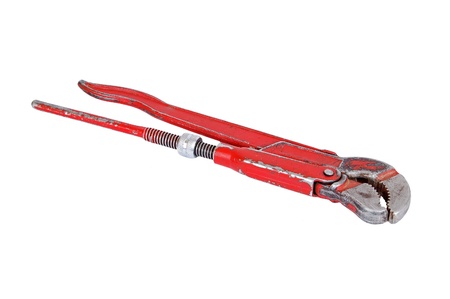 Old rusty adjustable gas wrench, isolated on white background