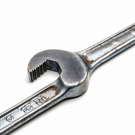 Spanner on a white background. Close-up shot.