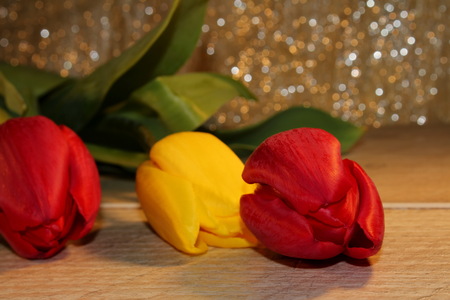 A bouquet of beautiful yellow and red tulips close-up