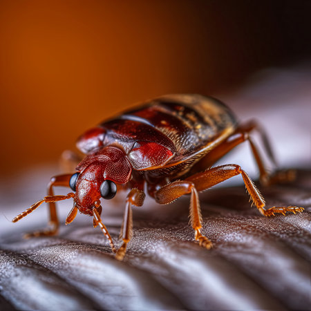 Bedbug close-up against a fabric background, providing detailed imagery for pest-related themes