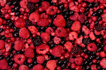 Close-up various fresh summer berries background - Raspberry, Blueberry and Red currant