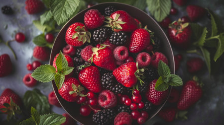 Freshly picked berries glistening with morning dew in a vibrant display of natures sweetness