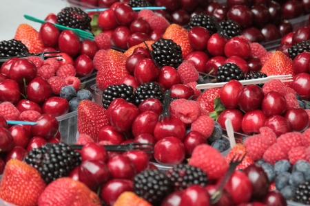 variety of soft fruits, strawberries, raspberries, cherries, blueberries, currants