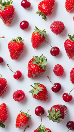 A vibrant display of fresh red berries on a light background, perfect for healthy recipes, food photography, or culinary art showcasing natural beauty and nutrition.