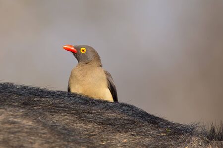 Cape buffalo with a red-billed ox-pecker looking for insects