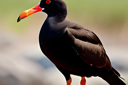 Black Oystercatcher American Water Bird Black Feathers Red Beak Haematopodidae Bachmani