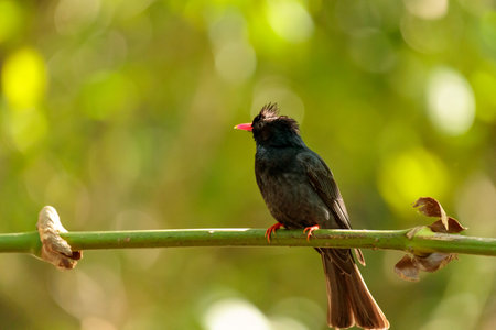 Madagascar Bulbul (hypsipetes madagascariensis) exotic bird on a tree branch
