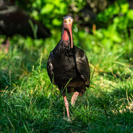 The northern bald ibis, hermit ibis, or waldrapp lat.Geronticus eremita is a migratory bird found in barren, semi-desert or rocky habitats, often close to running water.