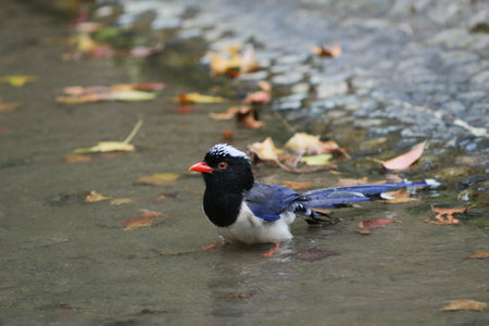 Red-billed blue magpie( Urocissa erythrorhyncha) in nature in Wildlife Sanctuary,Thailand